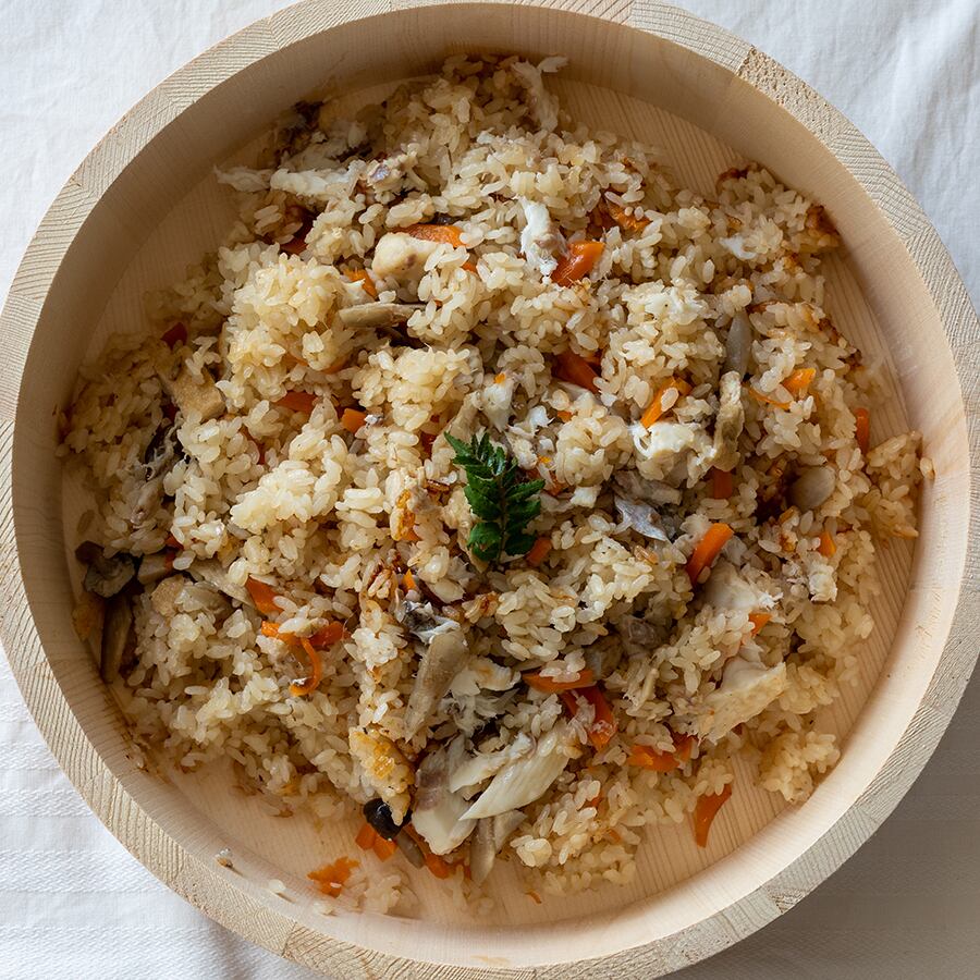 味の決め手は、なんといっても真鯛のアラから丁寧にじっくりと時間をかけ旨味をあますことなく抽出したお出汁。炊きあがりの豊かな香りと広がる鯛のうまみをぜひお楽しみください。セットには鯛の半身とにんじん、ごぼう、しめじ、油揚げもたっぷり入っています。※本商品は保存料、着色料、化学調味料を一切使用していません。